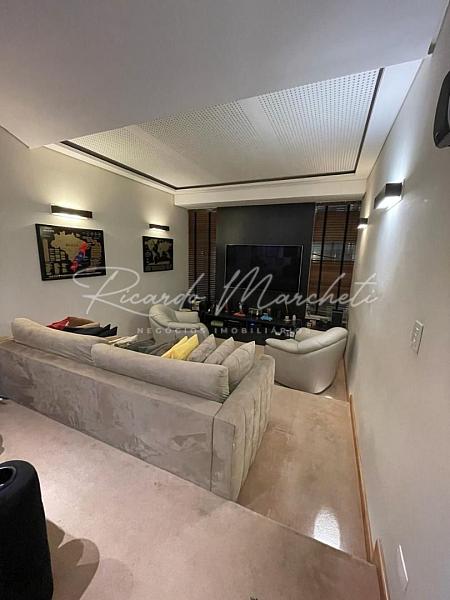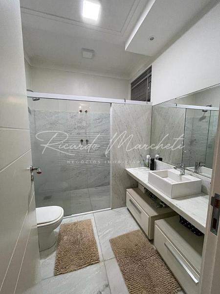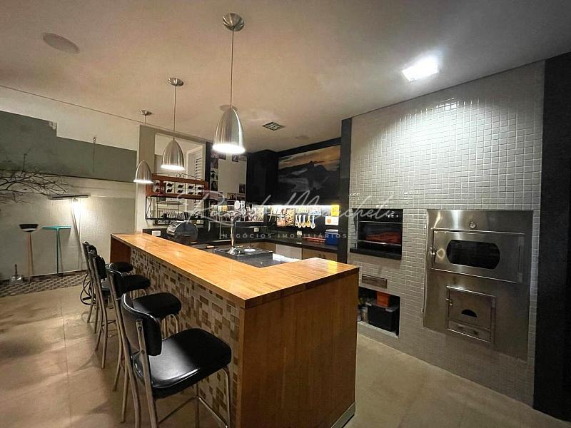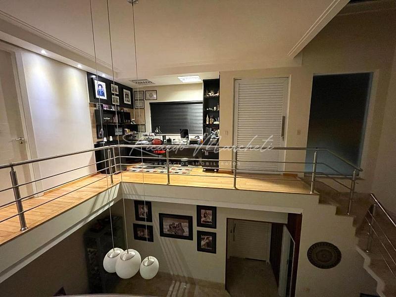 Condomínio Fechado em excelente localização, sobrado com 274 m² de construção em terreno de 250 m², sala para 2 ambientes com pé direito duplo, lavabo, sala de tv climatizada, cozinha planejada, agradável espaço gourmet com churrasqueira e chopeira, banheiro externo, quintal com piscina, chuveirão e cascata. Pavimento superior com escritório, banheiro social e 3 dormitórios climatizados, sendo 1 suíte com closet, hidromassagem e sacada. 3 vagas de garagem cobertas. Imóvel com aquecimento solar incluindo a piscina e sistema de aspiração central.