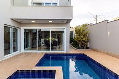 Casa térrea com excepcional projeto assinado pela arquiteta Fabiana Gelmini, construída num terreno de 723,83m² de esquina com 340m² construção , com fachada imponente, 3 suítes sendo 1 máster com closet, sala dois ambientes com pé direito alto, hall de entrada , lavabo, integração com a piscina de 21m² com prainha, cozinha com despensa, lavanderia, banheiro de apoio, escritório, amplo quintal, garagem para 6 carros.