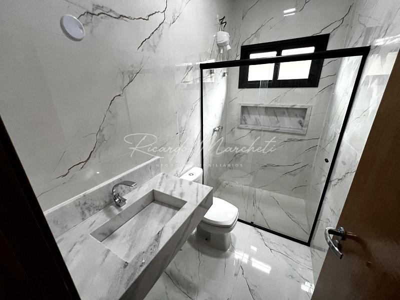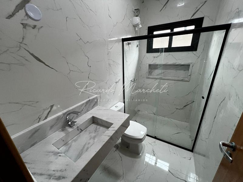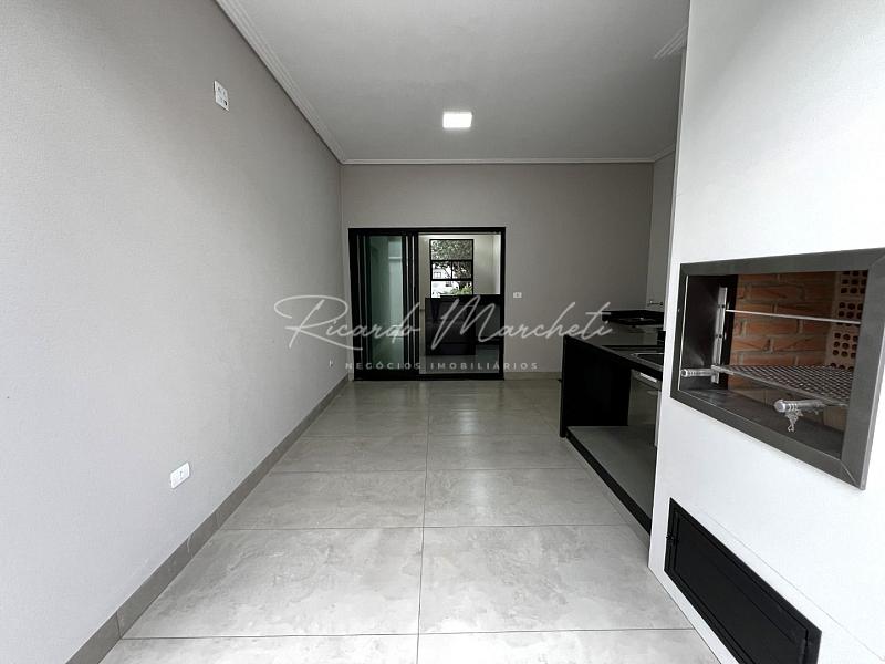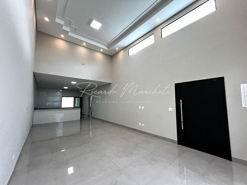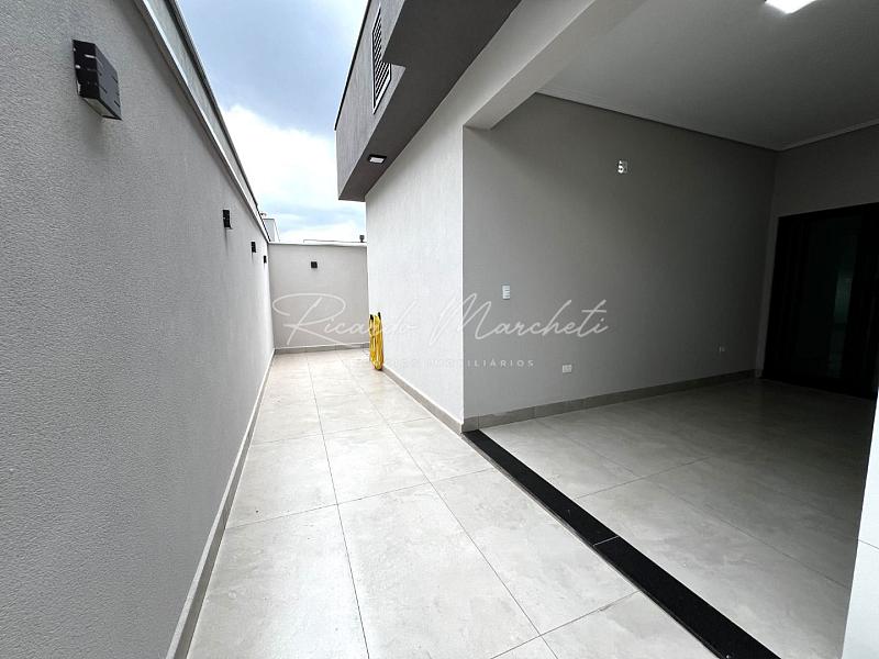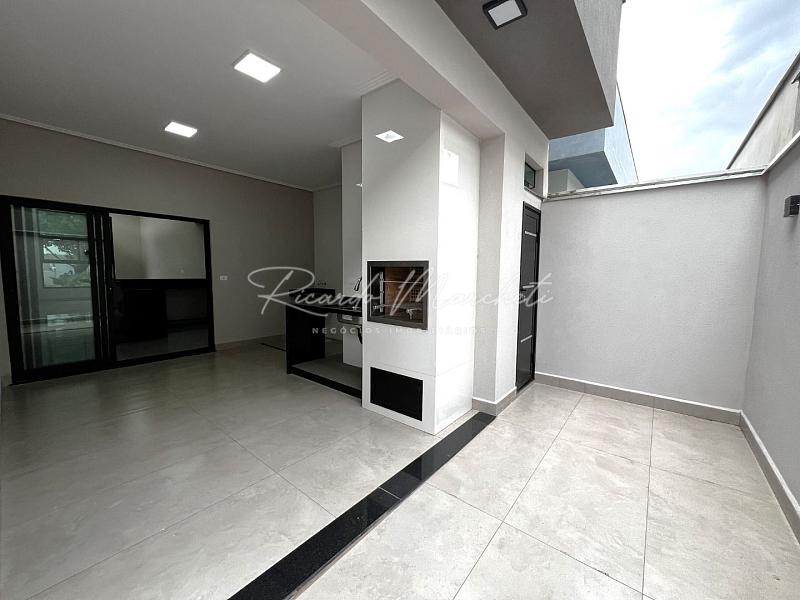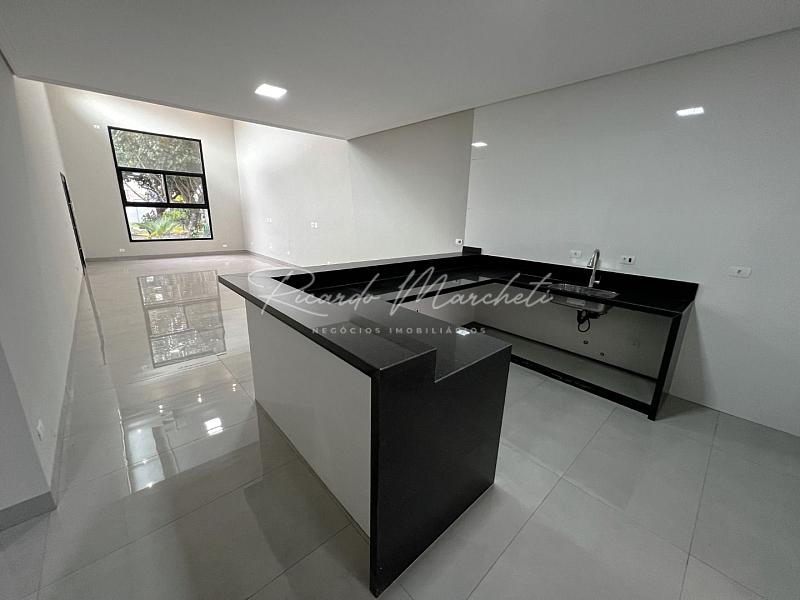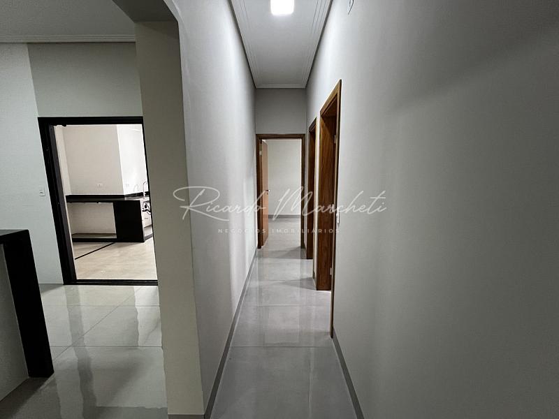 Casa térrea nova em condomínio Fechado com terreno de 250,00m² e 160,00m² construção sendo 3 dormitórios 1 suíte, sala dois ambientes com pé direito alto, cozinha tipo americana, área gourmet com churrasqueira carvão, banheiro externo, lavanderia, quintal , corredor independente, garagem 4 veículos sendo 2 cobertos.