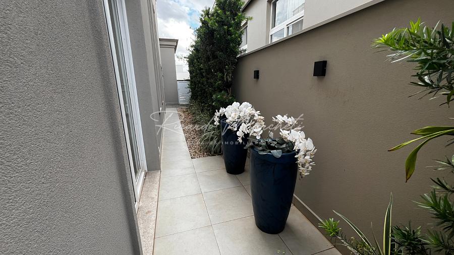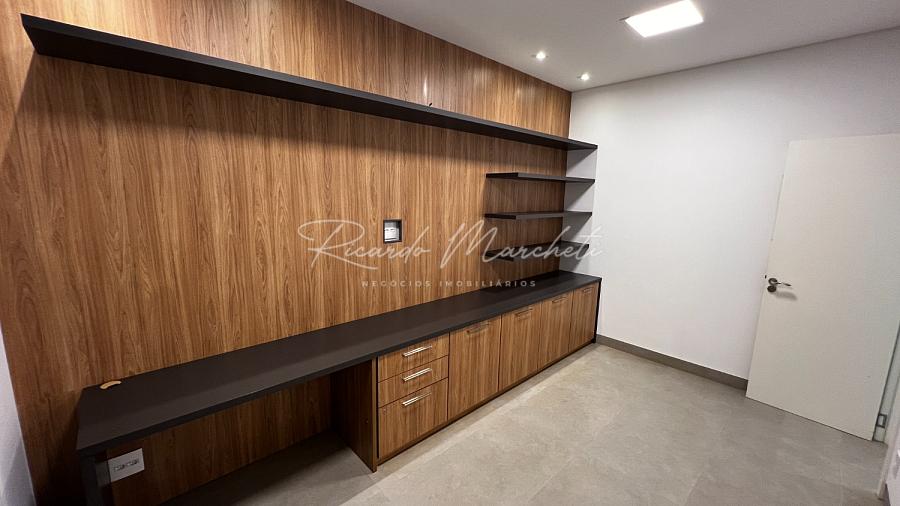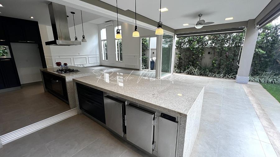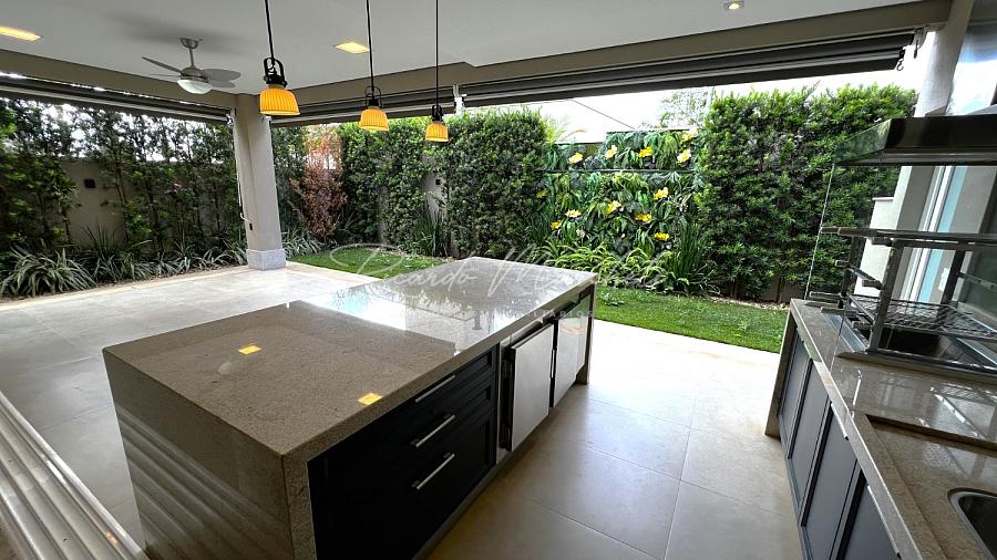 Logo na entrada uma porta de madeira toda trabalhada sob medida, hall com lavabo e escritório com armários planejados e climatizado, ampla sala 2 ambientes com pédireito alto esbanjando claridade , integrado a cozinha com ilha toda equipada com torre quente, forno, lava ouças, cooktop, coifa frezer da marca Brastemp gourmet, armários da Florence, espaço gourmet com churrasqueira carvão , lavanderia com armários, ótimo quintal com paisagismo, entrada independente., garagem 4 carros sendo 2 cobertos.