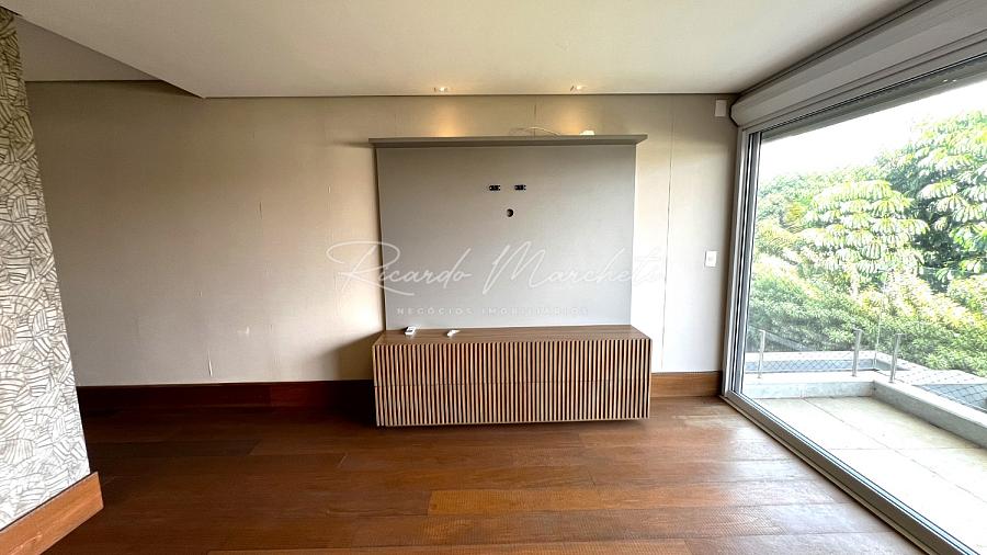 Ao abrir as portas, a luz natural invade o amplo living com pé direito duplo, revelando um ambiente de imponência e aconchego. O canto dos passaros na manhã se mistura ao frescor do jardim que se vê pelas grandes esquadrias, criando a sensação de estar em um verdadeiro oásis urbano.
