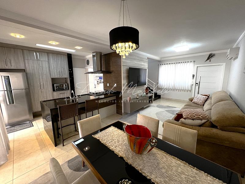 Sobrado com projeto diferenciado, um verdadeiro Oásis de se viver, uma casa que realmente não da vontade de sair, são 221,40m² de terreno com 176,66 de construção distruidos em 3 dormitórios 1 suite com armários, os outros dois dormitórios com vista para o quintal e avarandados e com armários, todos os quartos com persianas e ar condicionado, wc social no pavimento superior.