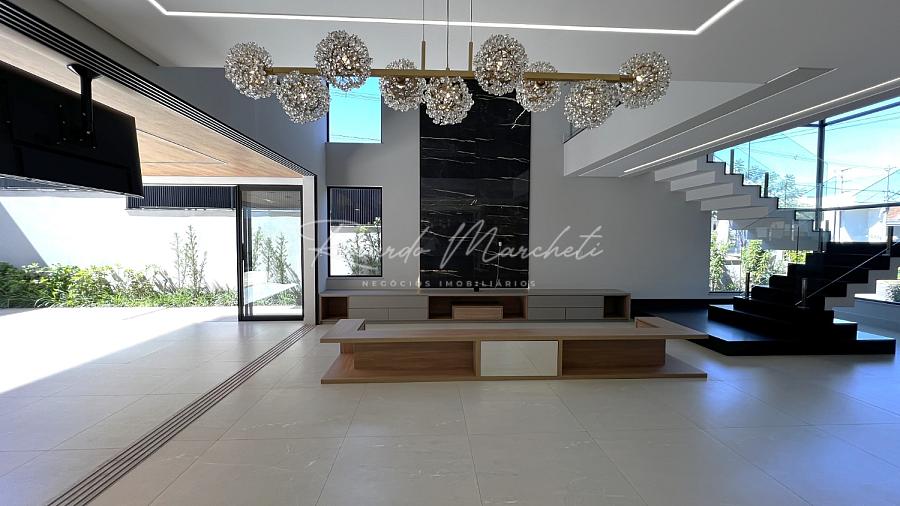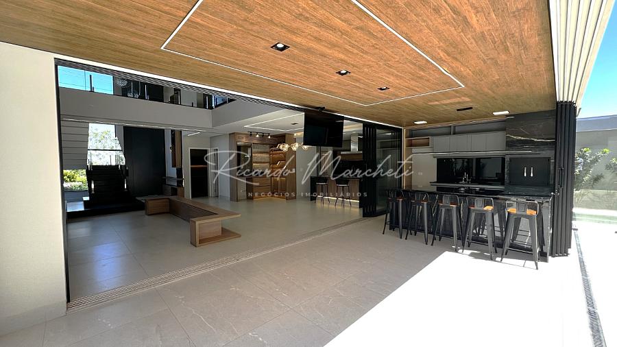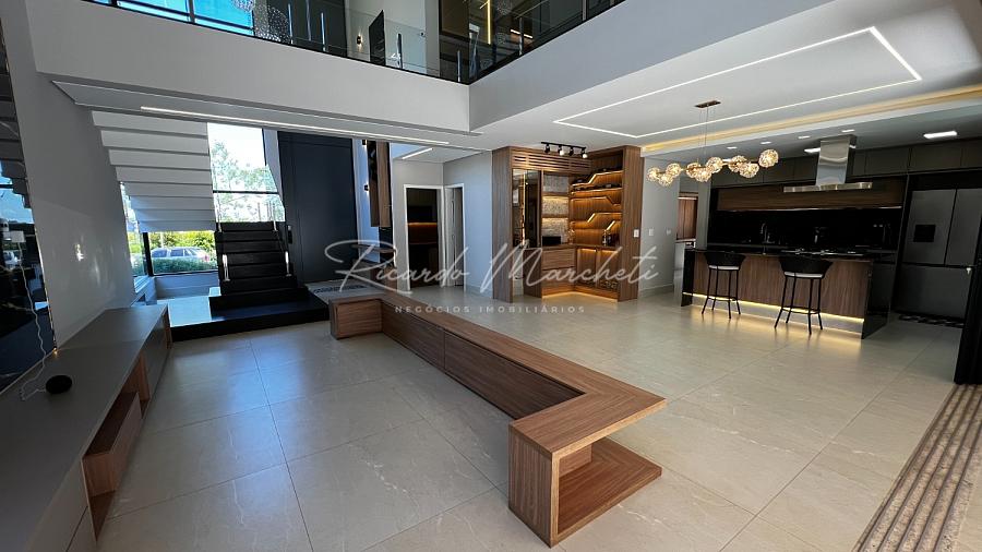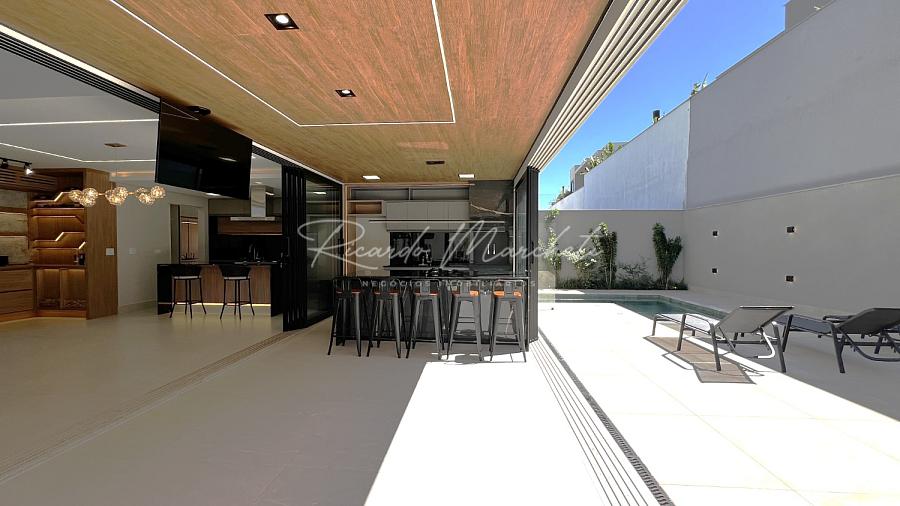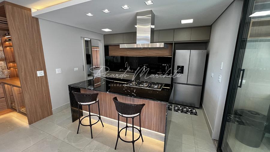 Com terreno de 408,51m² e 319,61m² construção muito bem distribuídos 3 amplas suítes, todas com closet e varanda, além de persianas elétricas que proporcionam conforto e privacidade, sala de estar com pé-direito duplo, integrada à cozinha com ilha central, criando um ambiente sofisticado e acolhedor, lavado, escritório planejado para duas pessoas, ideal para o home office, espaço gourmet completo, com parrilla argentina, perfeito para receber amigos e familiares, piscina aquecida com prainha, hidromassagem e cascata, cercada por um paisagismo exuberante com irrigação automática, sauna úmida integrada à área da piscina, garagem 4 carros sendo 2 cobertos com tomada para carro elétrico.