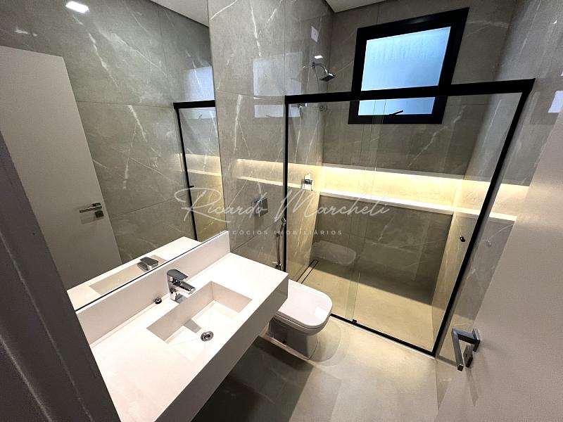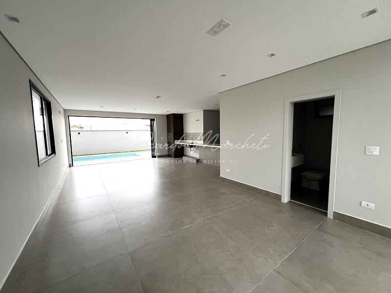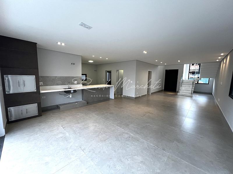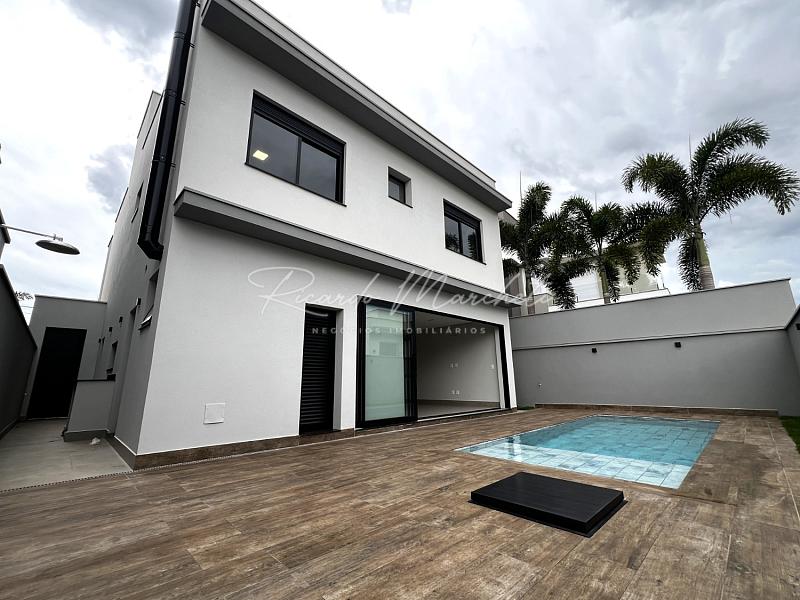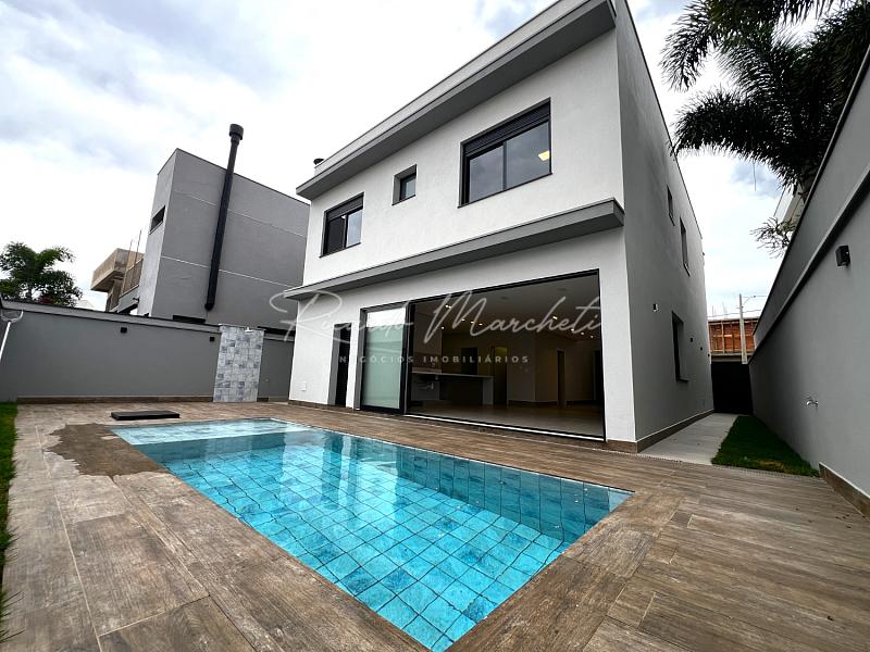Belíssimo sobrado com fachada contemporanea e imponente , com projeto em conceito aberto , sala 2 ambientes com cozinha gourmet, lavabo, despensa e lavanderia, bancadas em pedra quatzo branco, amplo quintal com piscina 16m@ com infra para aquecer, pontos de hidro e iluminação em led, banheiro externo e deposito, pé direito duplo na escaderia, escritório ou opção para um quarto dormitório, 3 suites 1 amster com closet e varanda, garagem  4 carros 2 coberto. paisagismo.