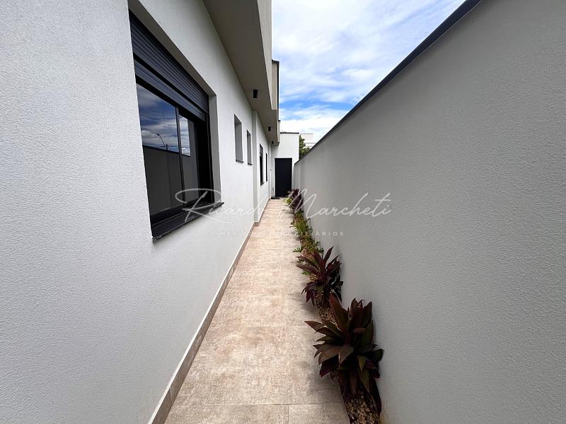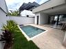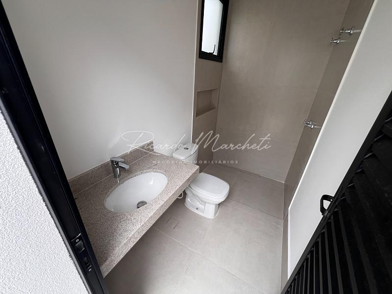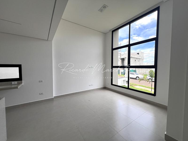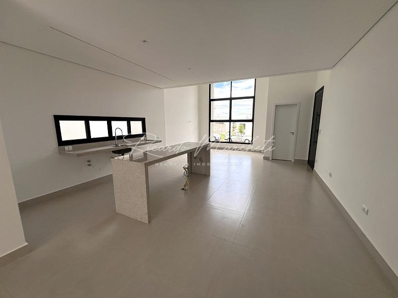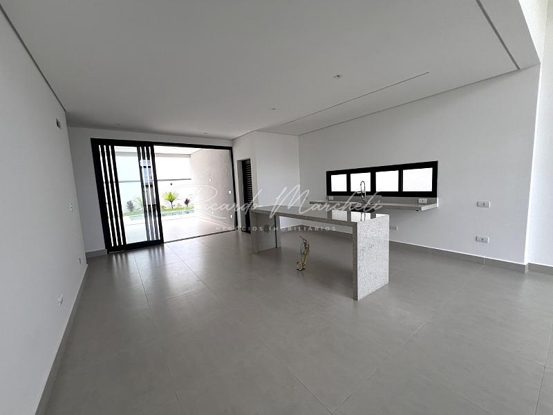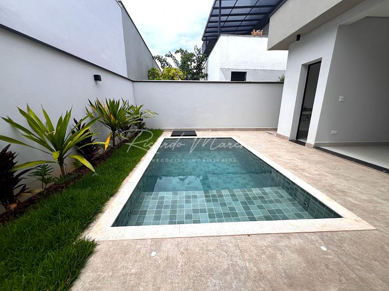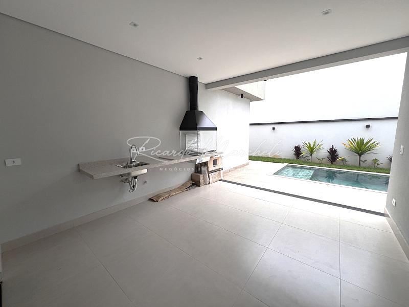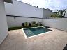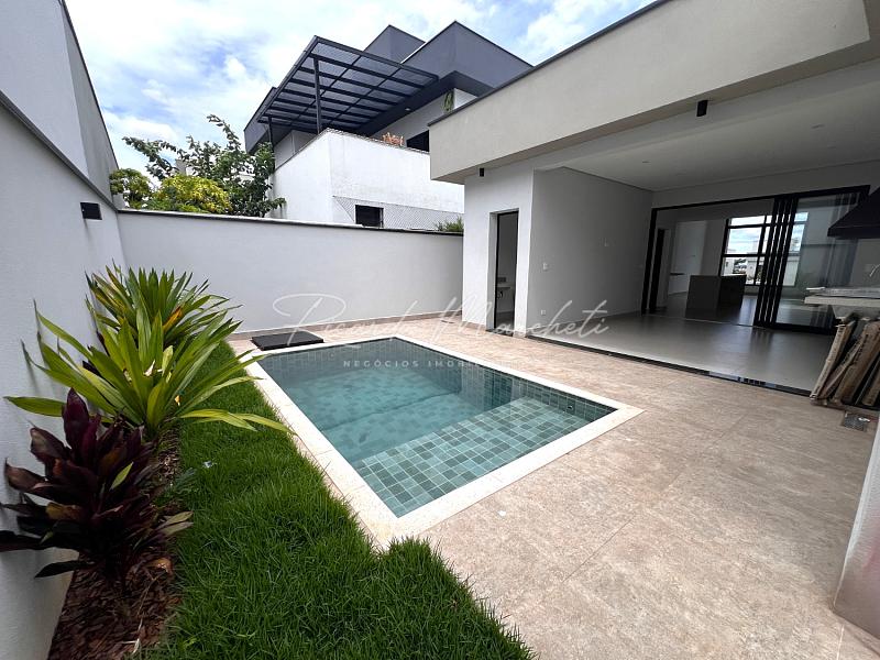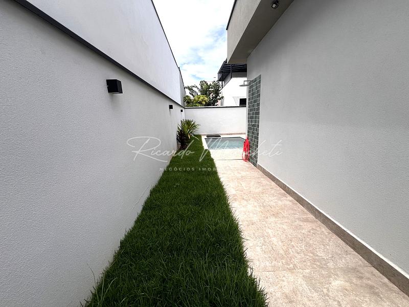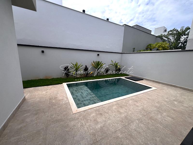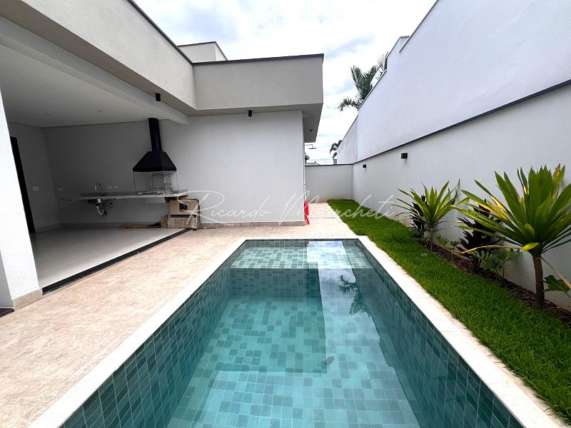 Casa térrea nova em condomínio Fechado com terreno de 335m² e 177m² de construção, 3 suites 1 master, lavabo, sala 2 ambientes com cozinha com ilha, lavanderia, espaço gourmet separado, quintal com piscina e paisagismo, banheiro de apoio, garagem 4 acarros sendo cobertos.
