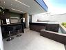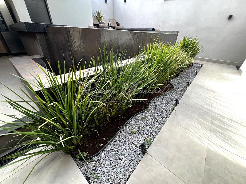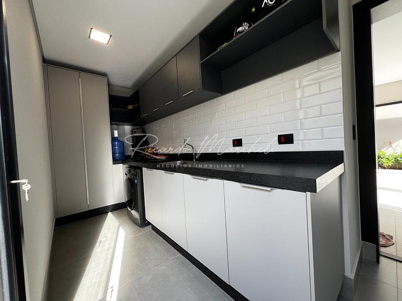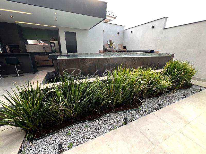 Pavimento térreo - garagem 4 carros sendo 2 cobertos, sala de tv, lavabo, cozinha tipo americana com ilha cooktop, coifa, torre quente, despensa, lavanderia planejada com acesso independente , quintal com espaço gourmet chopeira, banheiro externo de apoio, piscina com borda infinita, paisagismo.