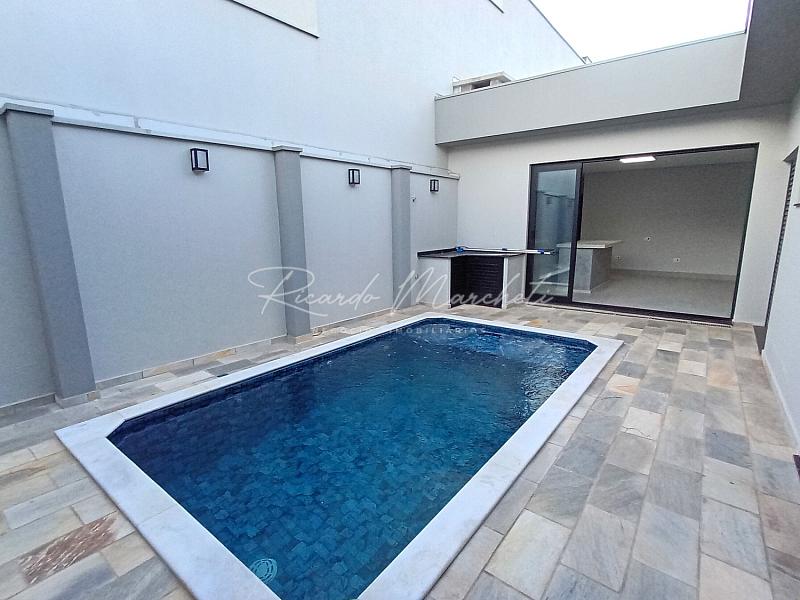 Casa nova térrea no Condomínio Soleil com terreno de 260m² e 162m² construção, 3 Suites , sala 2 ambientes pé direito alto, lavabo, cozinha com ilha, churrasqueira, quintal com piscina, banheiro externo, lavanderia, garagem 4 carros 2 cobertos.