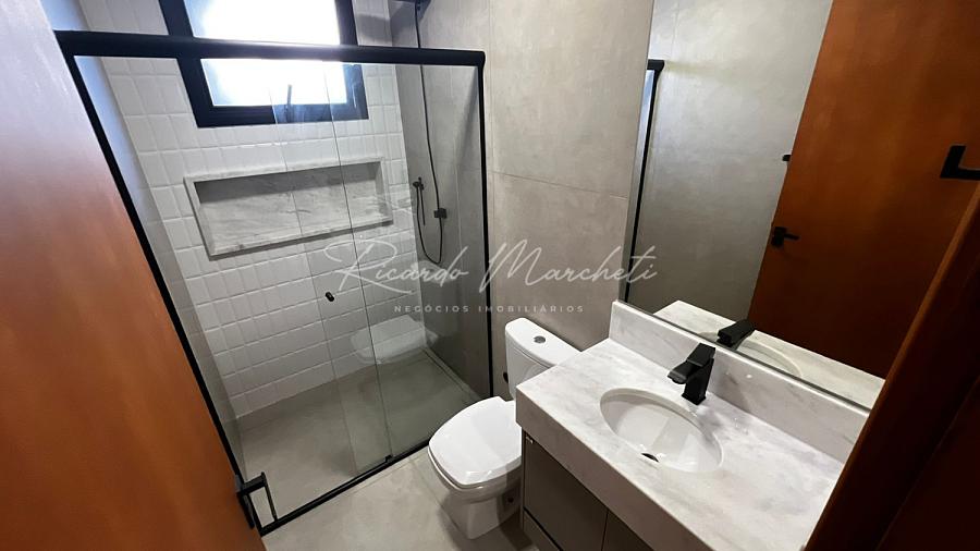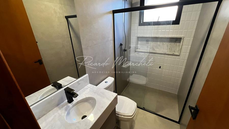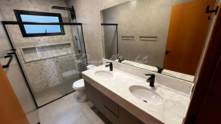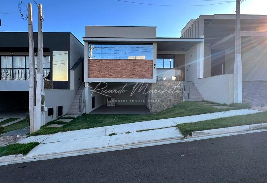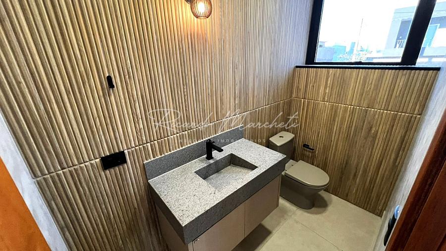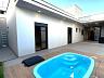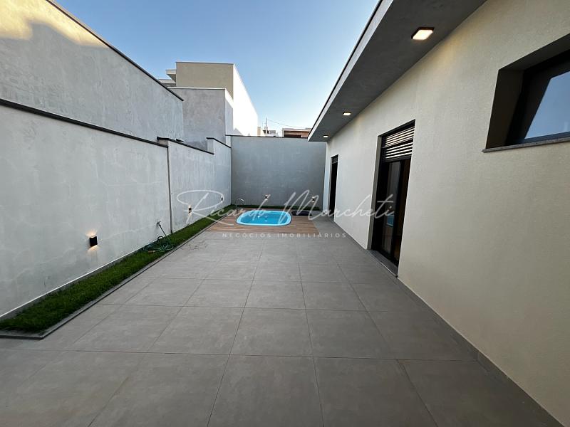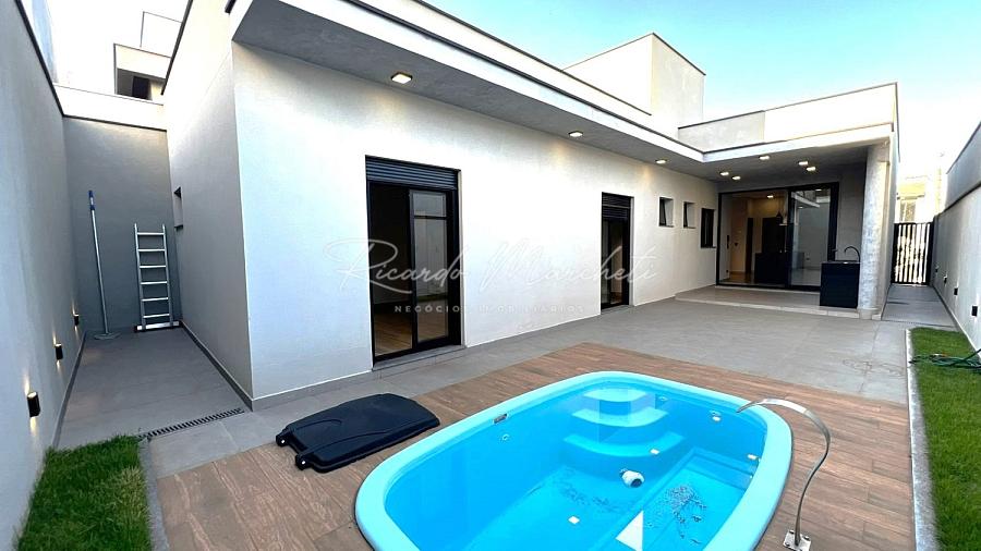 Casa semi térrea nova com fachada contemporanea com detalhes em pedra moledo e pele de vidro, 3 suites 1 master, lavabo, sala de estar, cozinha gourmet integrada com ilha cooktop, coifa, armários planejados, lavanderia com armários, quintal com piscina, aquecedor.