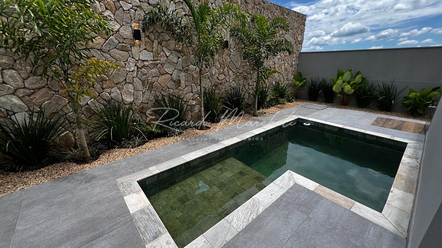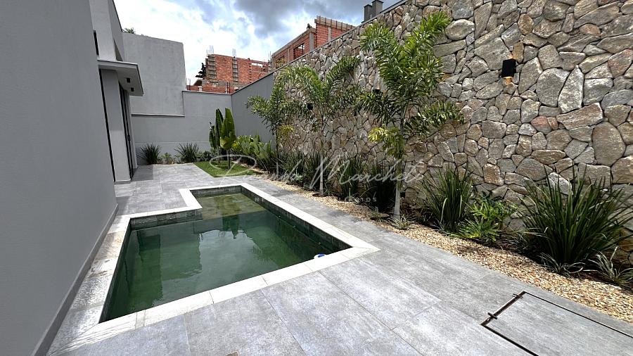 Casa com projeto inovador, ambientes integrados , vasta iluminação natural, fachada contemporanea, construida num terreno de 400m² e 212m² de construção com 4 Suites sendo 1 master com closet, lavabo, sala dois ambientes com pé direito alto integrado a cozinha gourmet com ilha e churrasqueira carvão, amplo quintal com paisagismo, destaque para o muto com revestimento de pedra moledo, piscina com prainha, garagem para 4 veiculos sendo 2 cobertos.