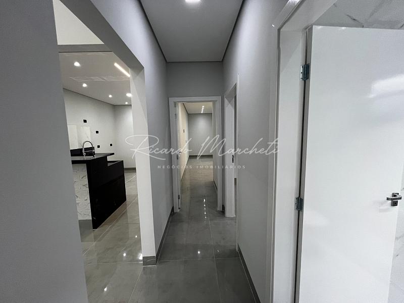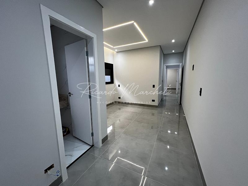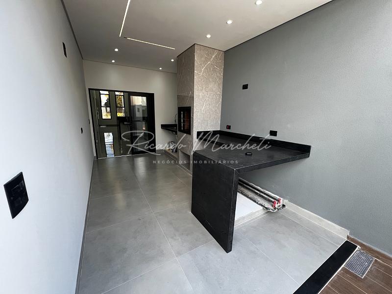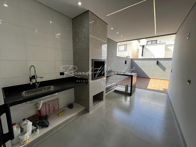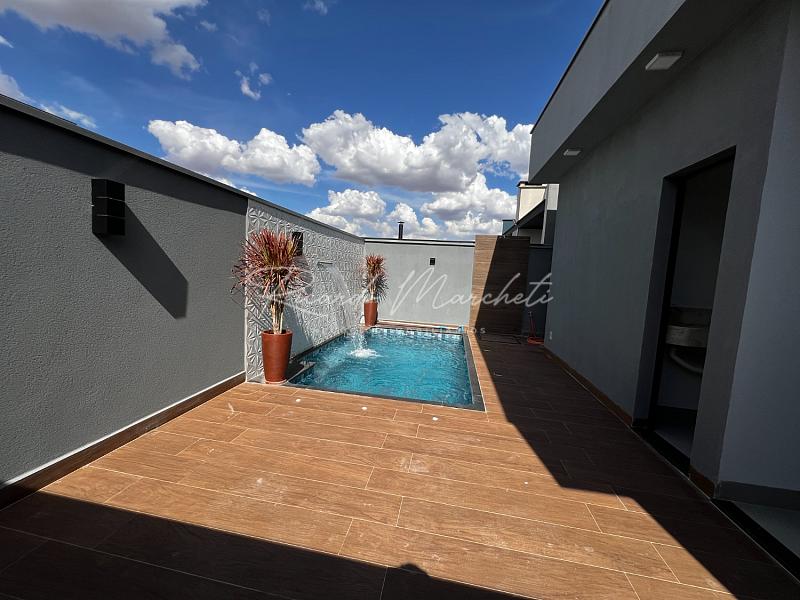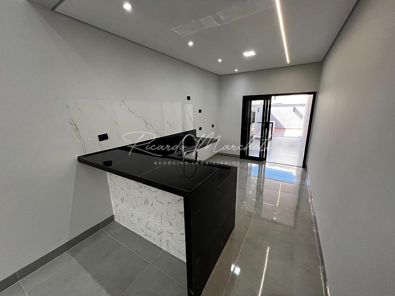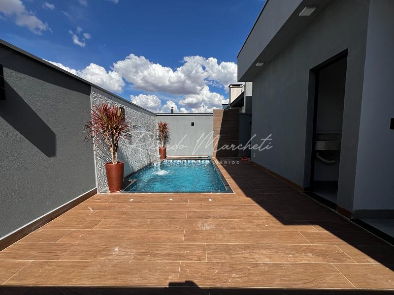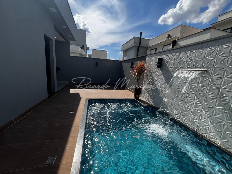 Casa térrea nova em condomínio Fechado com terreno de 200,00m² e 133m² construção, sendo 3 dormitórios 1 suite espaço closet, sala dois ambientes com pé direito alto, cozinha tipo americana, espaço gourmet separado, quintal com piscina e cascata, wc de apoio, garagem 2 veiculos cobertos. acabamento em porcelanato.