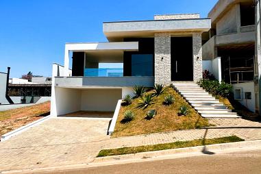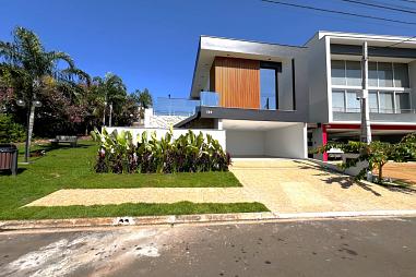 Casa térrea com terreno de 1.272m² e 384m² construção com projeto de excelente integração dos ambientes, destaque para acesso da área social e quartos para área de piscina, otima iluminação indireta, ambientes amplos e aconchegantes. São 3 suites sendo uma master com closet, todas com acesso ao amplo quintal, sala dois ambientes com pé direito alto e revestimento em madeira aparente, integrado a cozinha e espaço gourmet, mezanino avarandado com vista externa para o condomínio e área verde, lavabo, lavanderia, despensa, ampla área de quintal com piscina e espaço gourmet com churrasqueira carvão. Área intima com pisco quente, esquadrias em alumínio preto, projeto de iluminação em LED e climatização , esquecimento solar. Area de lazer com quadra poliesportiva, quadra de tênis, quadra de futebol de area e beach tênis, playground, salão de festas. Aceita financiamento, estuda permuta.