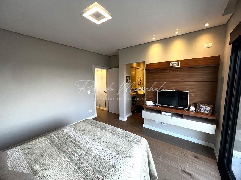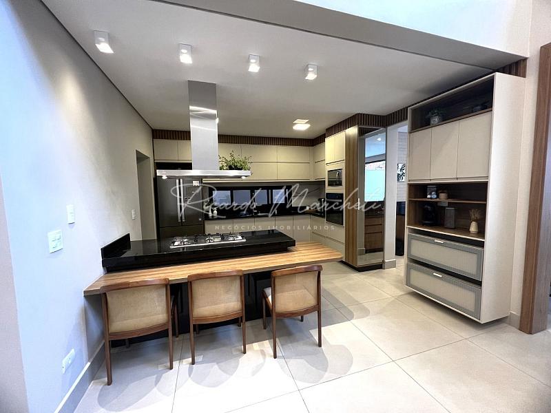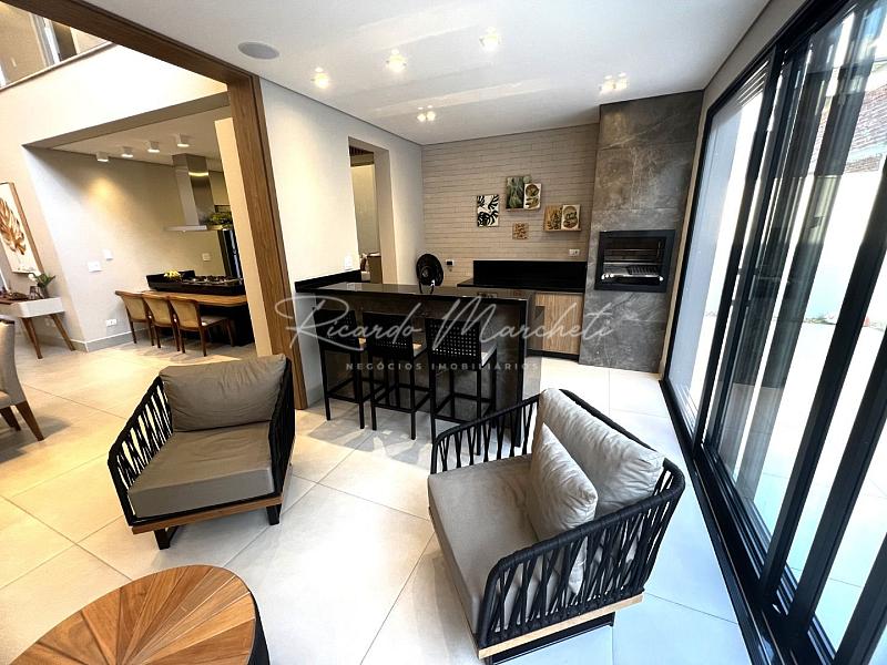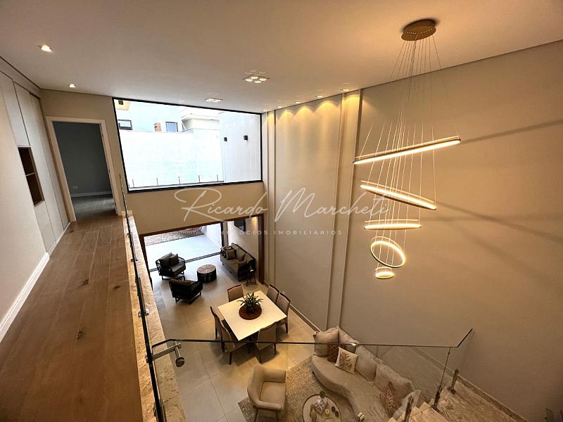 Sobrado com projeto integrado com terreno de 250,00m² e 232,00m² construção com 3 Suítes 1 máster com closet, banheira de hidro, sala de tv, lavabo, sala pé direito duplo integrado com a cozinha planejada com ilha, coifa e cooktop, torre quente, espaço gourmet com churrasqueira carvão balcão de granito, despensa, lavanderia com armários , banheiro de apoio, quintal, garagem 4 veículos sendo 2 cobertos.