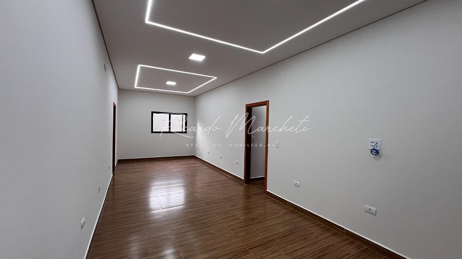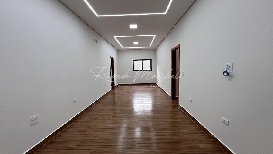 Casa nova térrea com 3 dormitórios 1 suite, sala 2 ambientes, lavabo, cozinha com armários, lavanderia, despejo, amplo quintal gramado, espaço gourmet, garagem 4 carros.