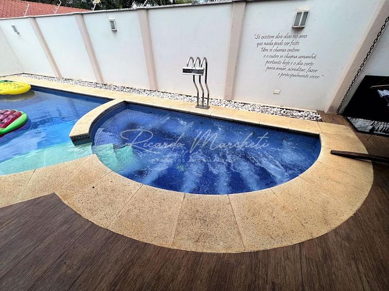 Exuberante sobrado alto padrão com arquitetura neoclássica em excelente localização com terreno de 643m² e 323m² construção, 4 dormitórios 1 suíte máster, varanda, armários, sala de jantar , sala de estar e sala de tv, todas climatizadas, lavabo, cozinha planejada com armários, torre quente, elevador, amplo quintal com piscina, hidro, piso atérmico, espaço gourmet, academia, salão de jogos, quanto de hóspede, paisagismo, garagem 6 carros, acabamento alto padrão.